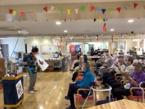 懐かしい歌や手品を鑑賞し、皆さんと一緒に何曲か歌い、楽しい時間を過ごすことができました。
