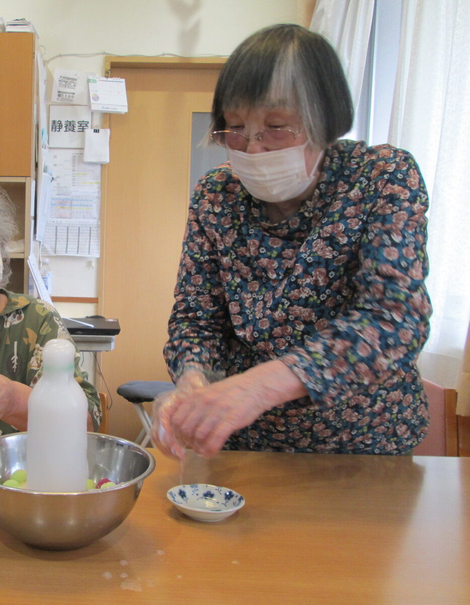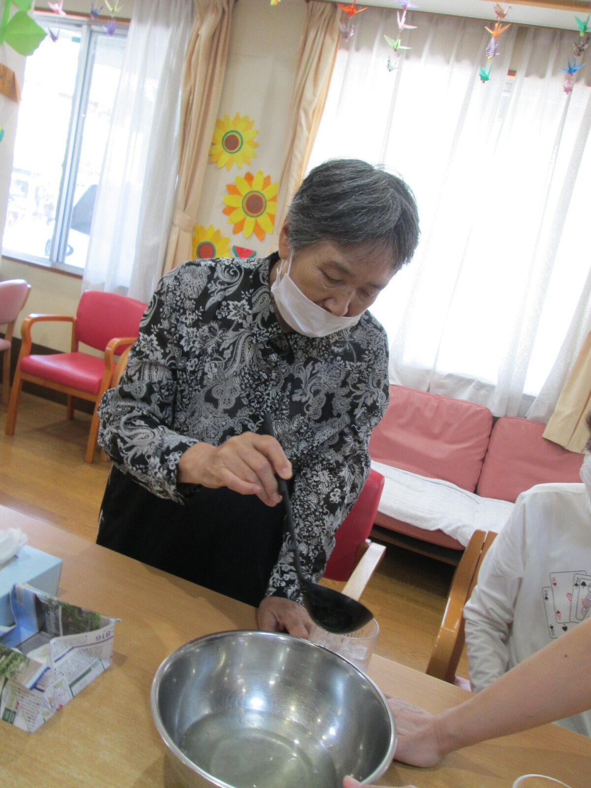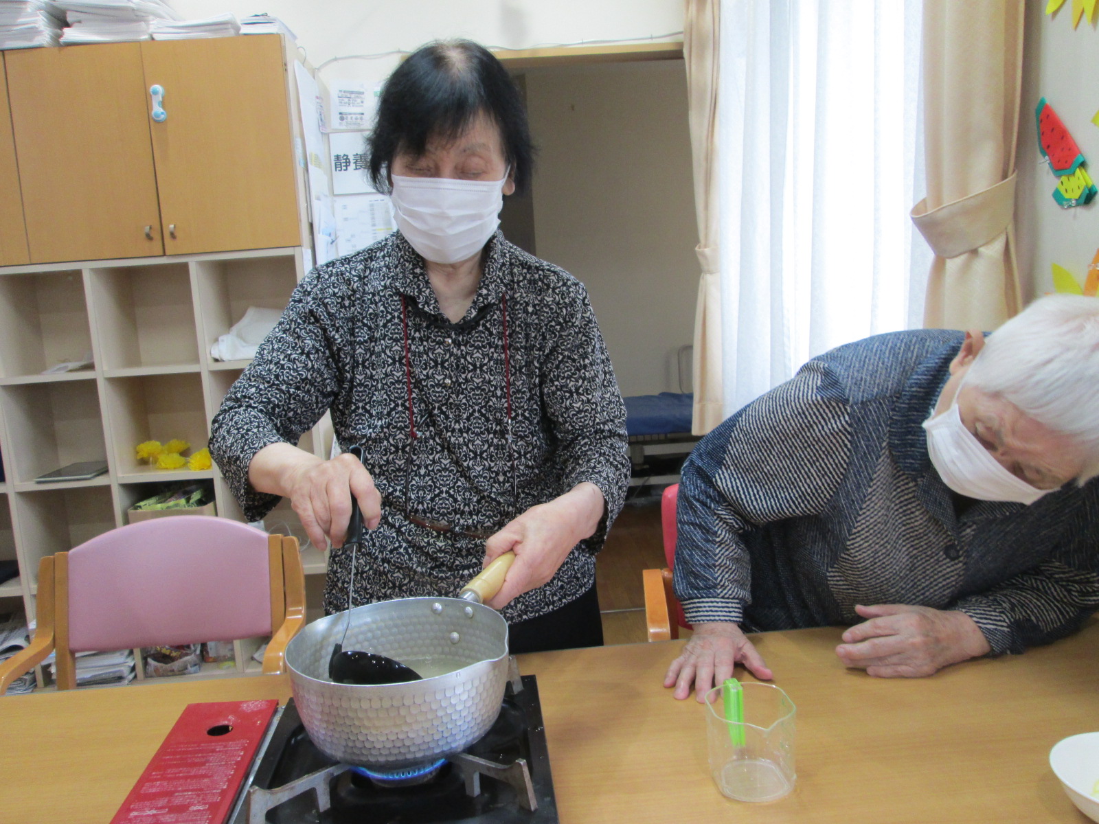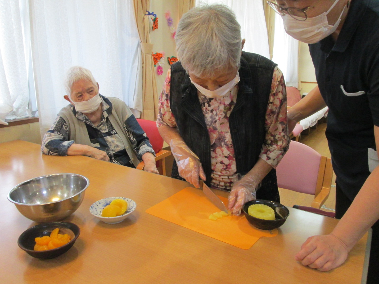 デイサービスセンター太陽・荒子ではまだまだ暑さ本番の8月と9月に、ご利用者様と楽しく美味しいおやつ作りをしました。
