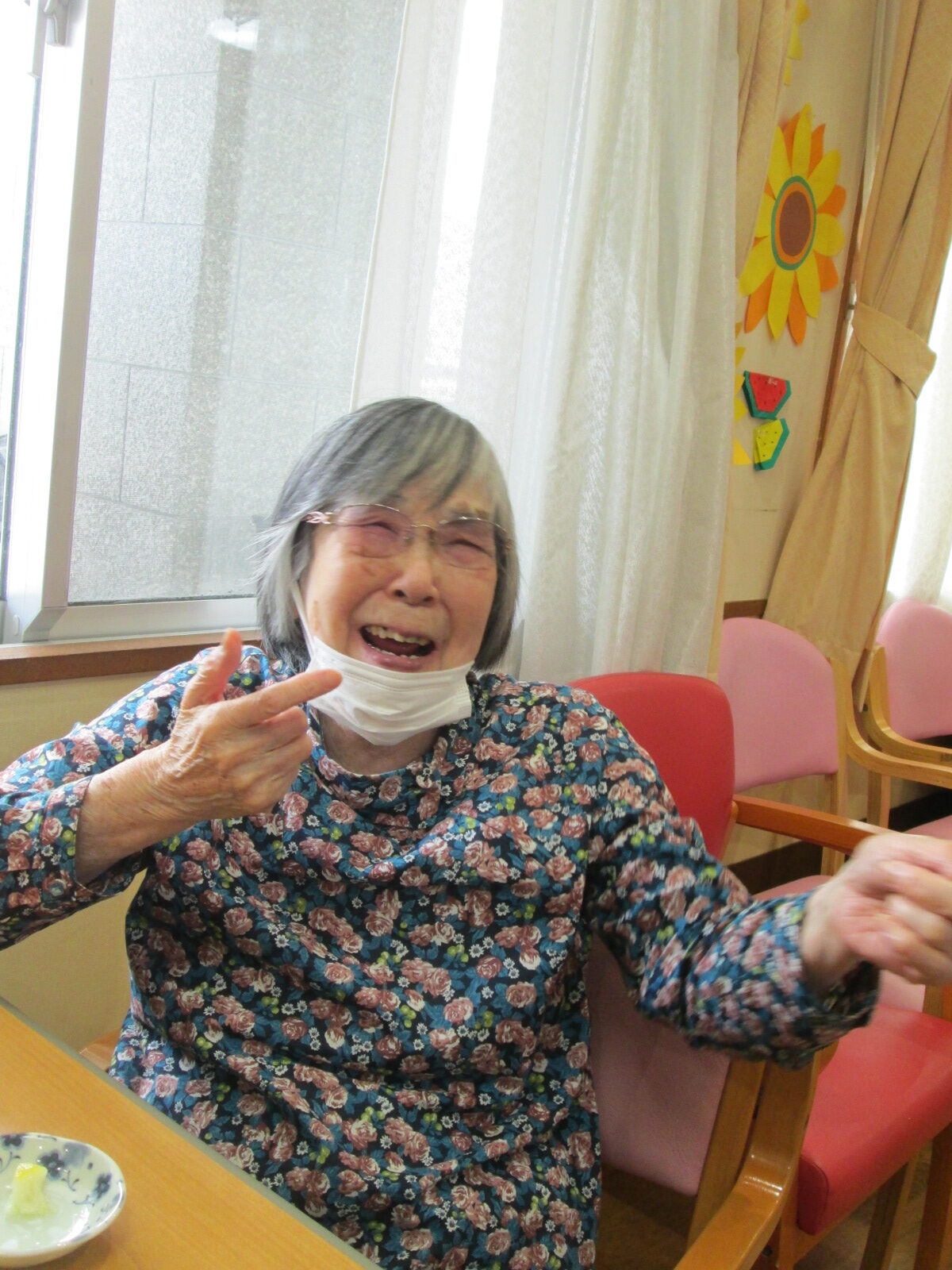 完成し目隠しを外した時にお腹を抱えて笑う方に苦笑いの方、クスッと笑う方と様々いて、職員が「鼻です、右目です」と言いながらパーツを手渡していくのですが、周りで見ている利用者様がウソの誘導をしたりととても賑やかな時間を過ごしました。