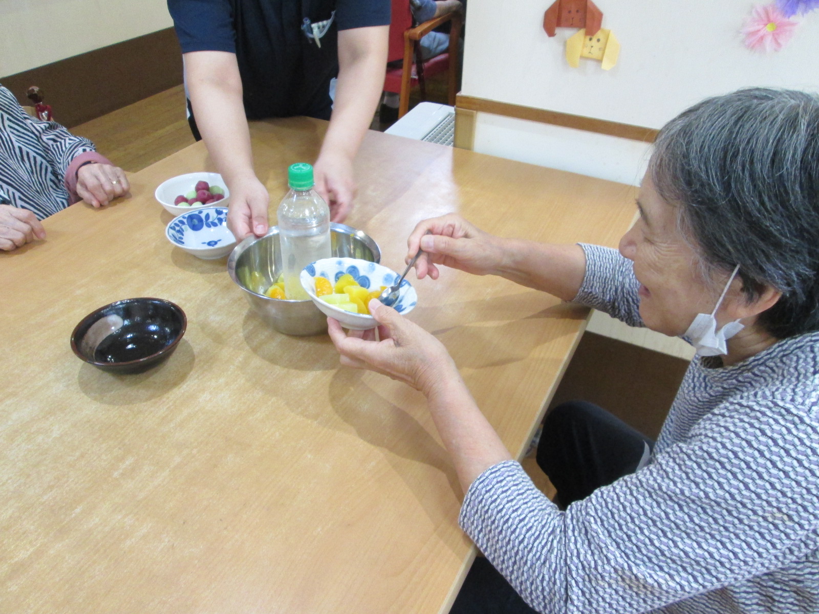 9月には〝見て楽しい!フルーツポンチ〟を作り食べました。