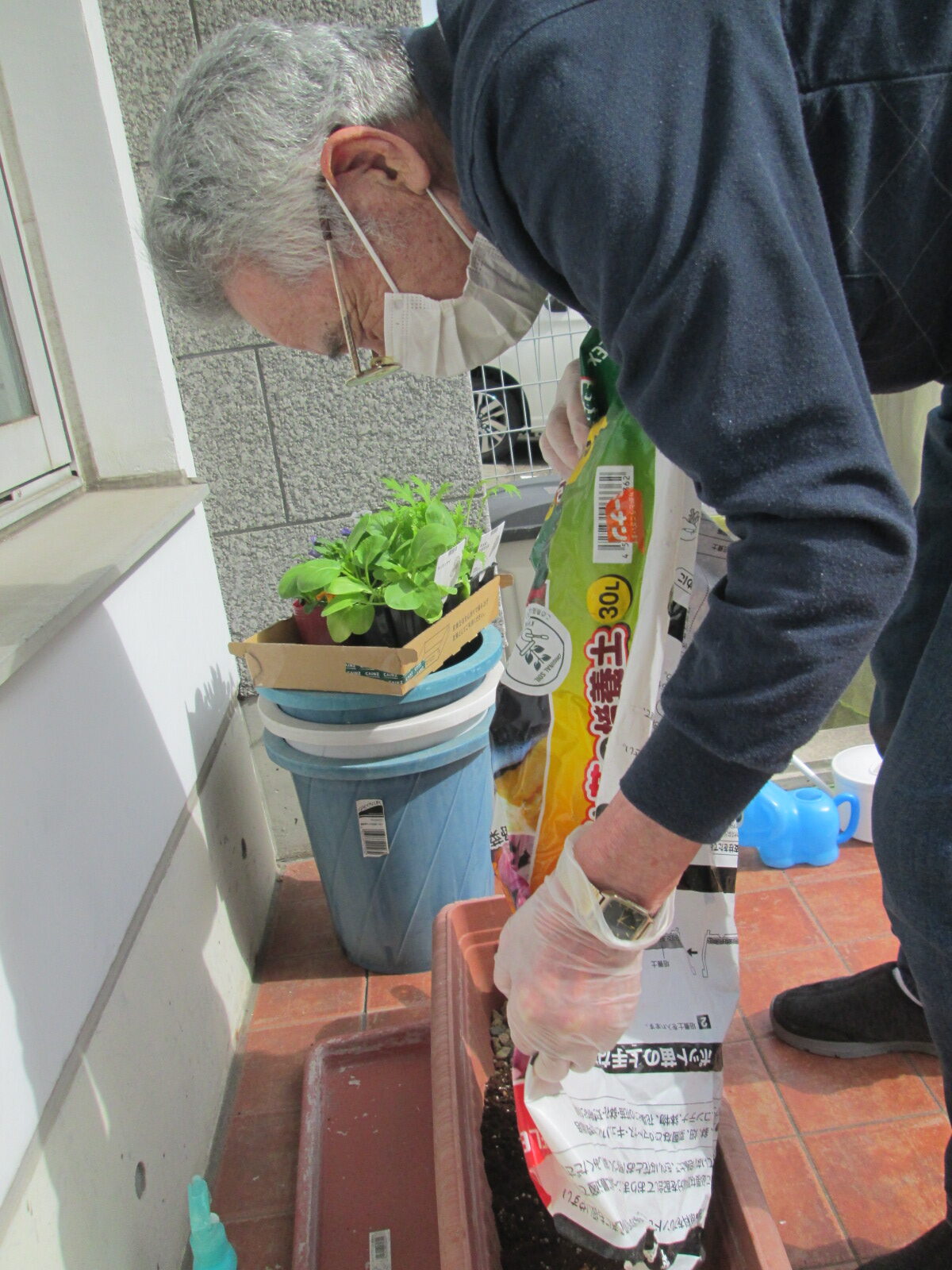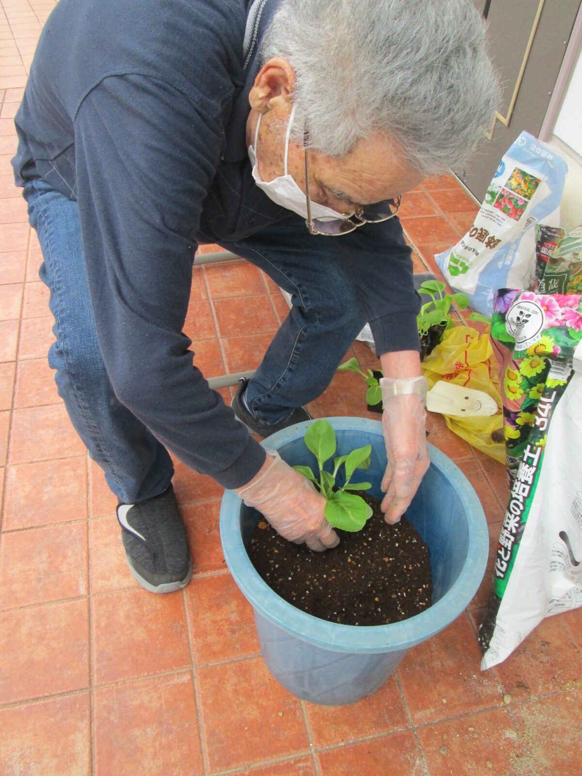 植え替えの際にはご利用者様が苗に優しく声をかけながら作業されていて、その柔らかい雰囲気に職員はとても癒されました。