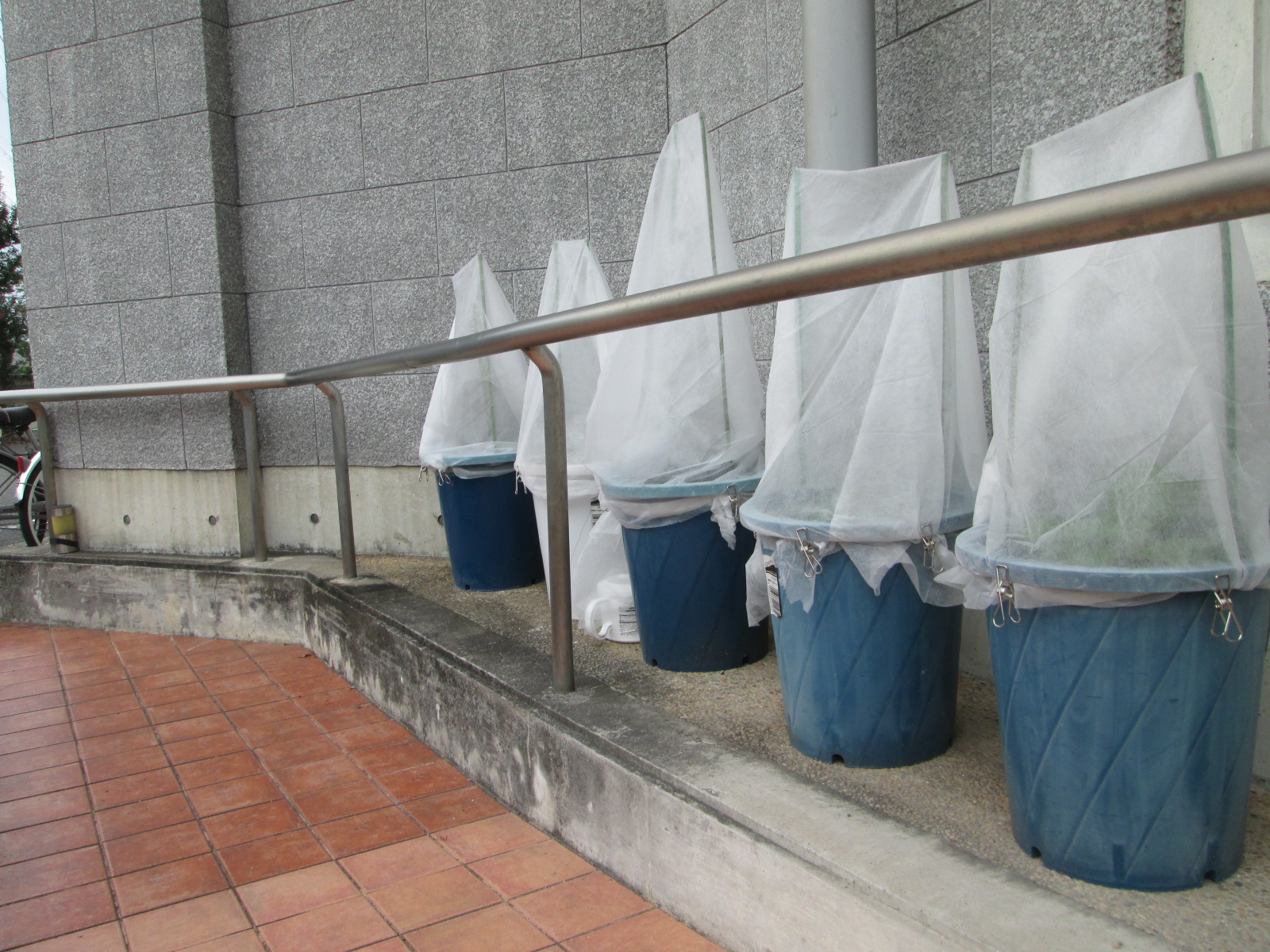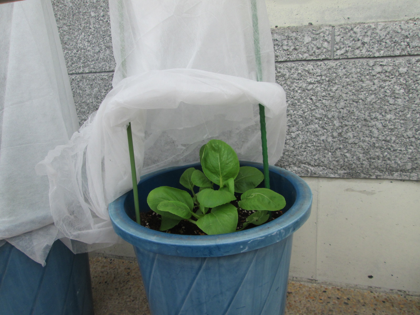 野菜も花と同じよう土を入れるところからやってくださいました。夏のナスが葉を虫に食われたので、野菜を守るために今回は虫よけにネットをつけています。