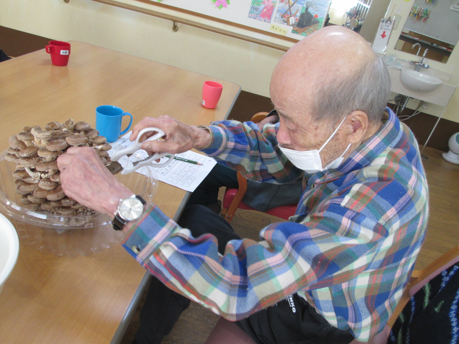 椎茸は煮物と混ぜご飯、汁物と多くの料理にいれたりと、どのお野菜も美味しくてご利用者様のみなさま「やっぱり取れたてはおいしいね」と笑顔をみせてくださいました。