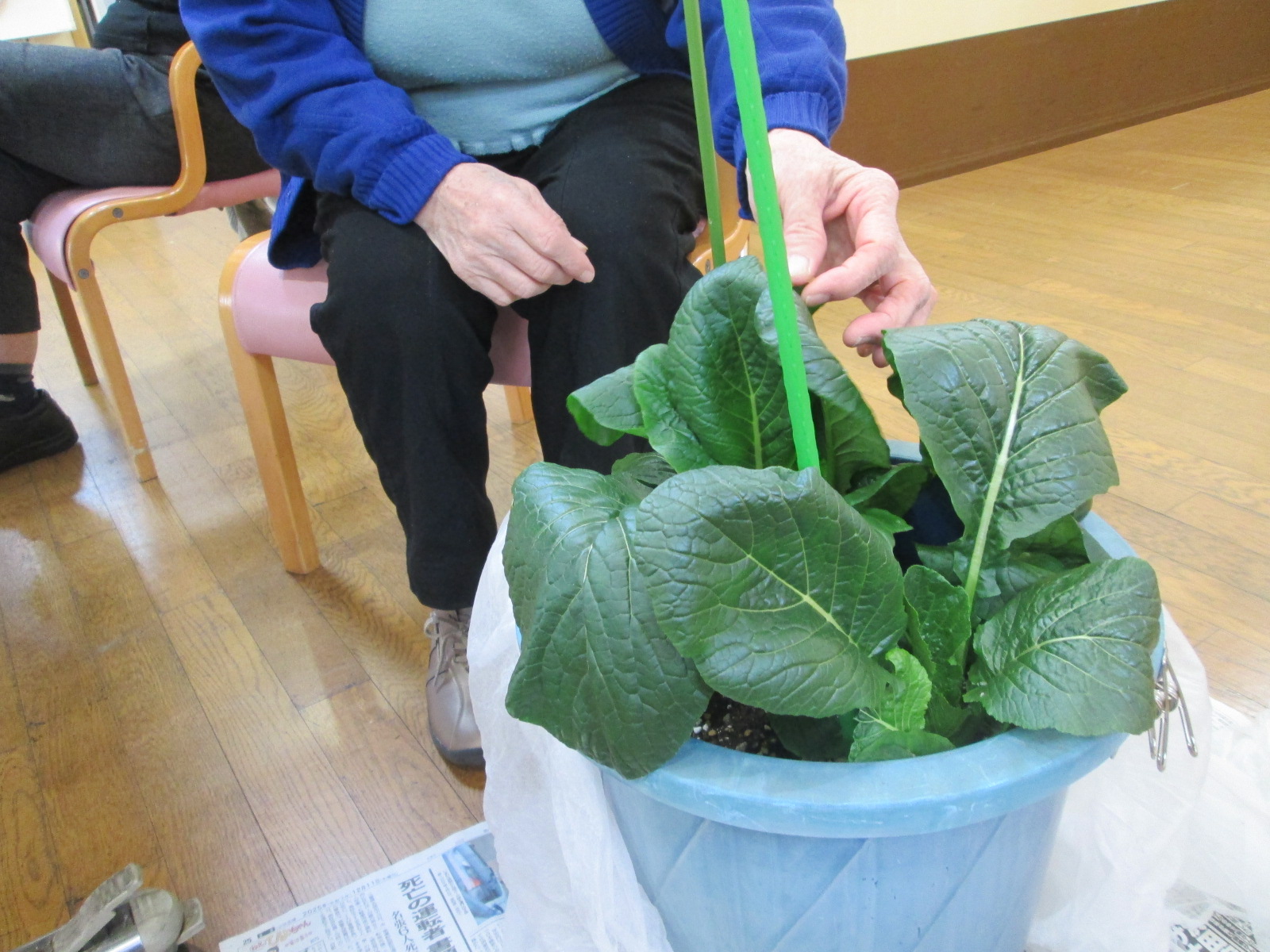 以前利用者の方と一緒に植えましたお野菜が本当に立派に育ち収穫をしたので、ぜひみてください。