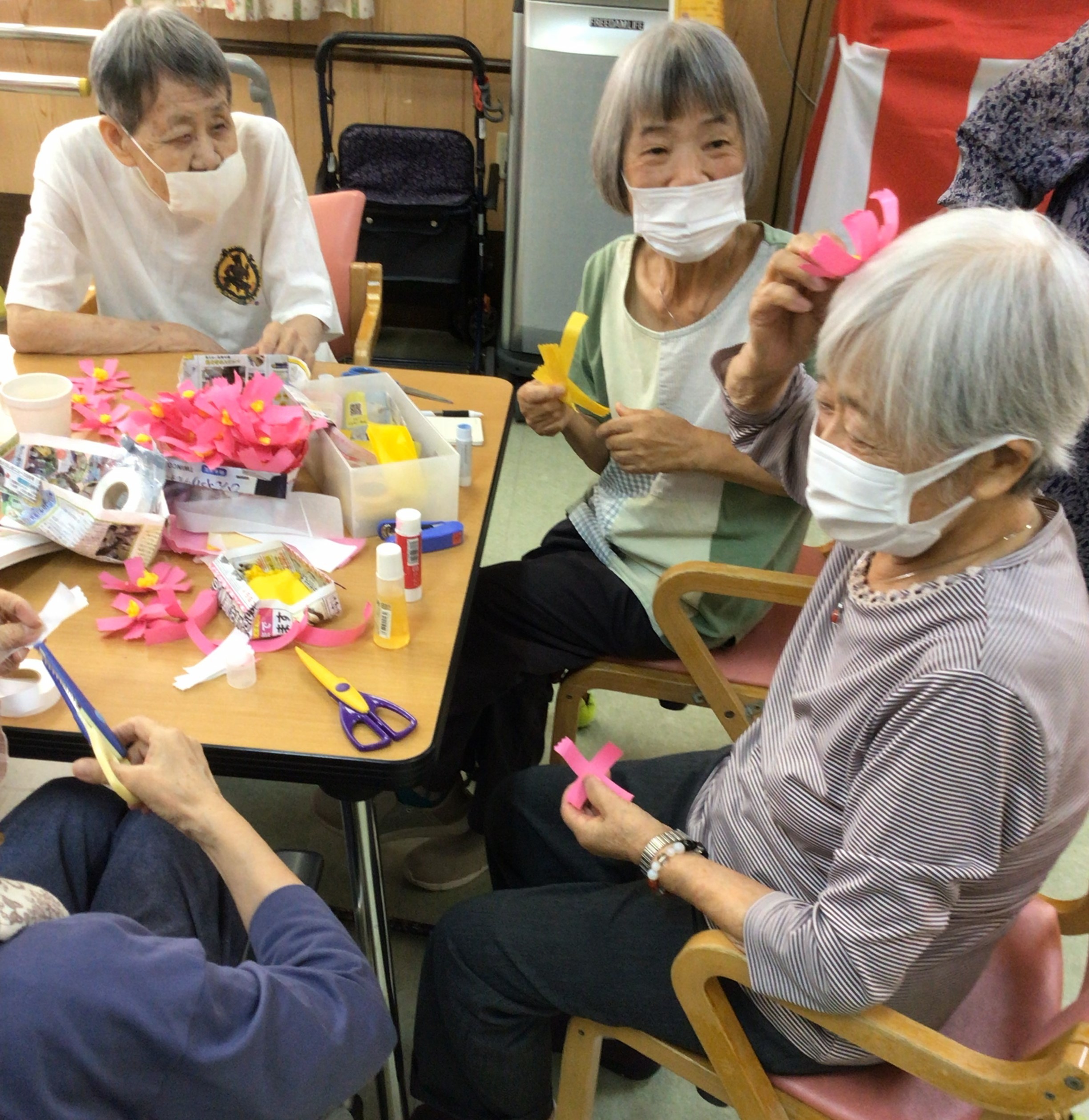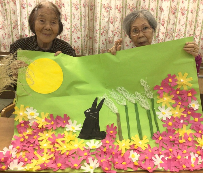 コスモスの壁紙も2ヵ月程かかって、皆さんで作り上げました。完成した時は大喜びしました。