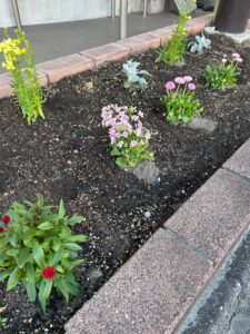 ステーション前の花壇には、様々な花を植えました。
